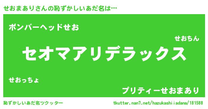 | 男性向けラノベタイトル風あだ名 | 『Re:せおまありから始める異世界生活』 |