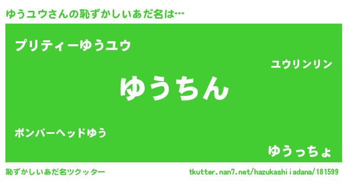| ヘコむあだ名 | 『ゆうユウ(小並感)』『ゆうにー』 |