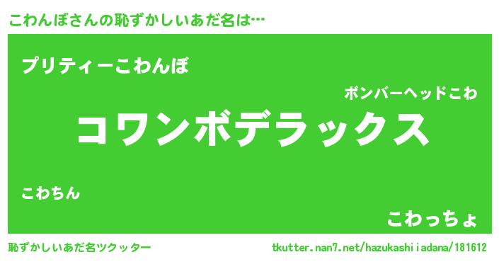 | 女子向けラノベタイトル風あだ名 | 『闇のこわんぼ』『こわんぼの雑貨屋さん』 |