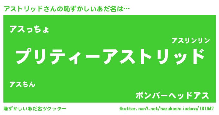 | ヒーロー風カッコイイあだ名 | 『スーパーアストリッド』『銀牙騎士アス』 |