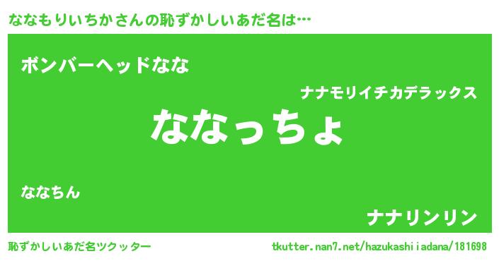 | 意味不明あだ名 | 『ななもりいちかフォーエバー』 |