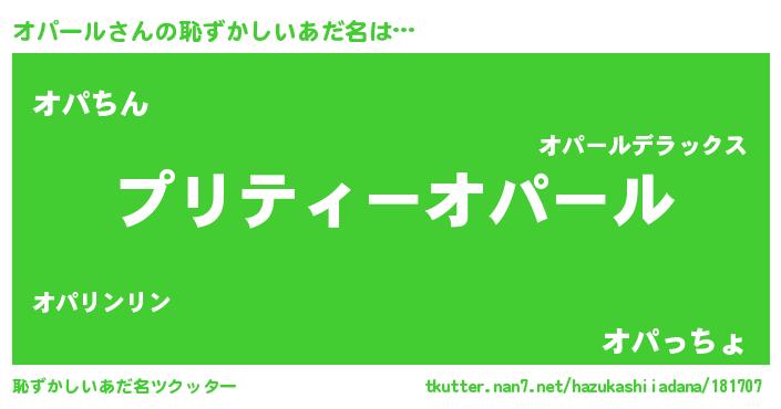 | 意味不明あだ名 | 『ペロリンオパール』『永久保存オパール』 |