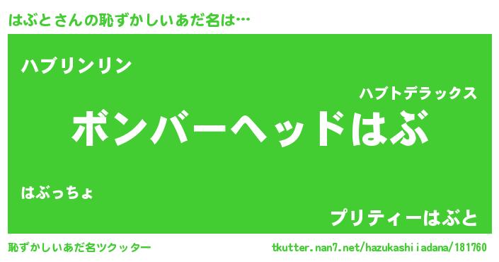| 男性向けラノベタイトル風あだ名 | 『はぶとに滅ぼされるだけの簡単なお仕事です』 |