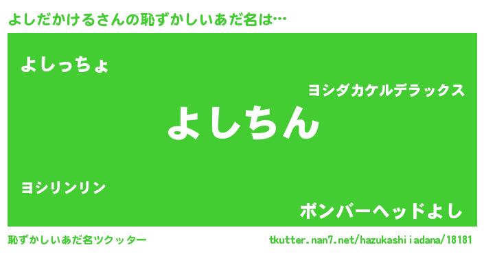 | ヘコむあだ名 | 『よしだかける(爆)』『酢こんぶ』 |