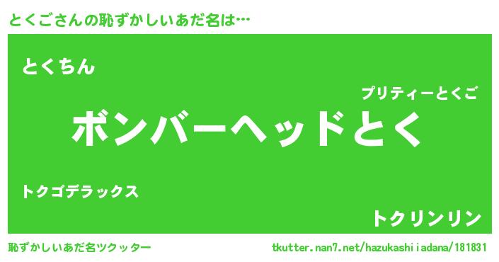 | 料理風あだ名 | 『とくごのトマト煮』『とくごごはん』 |