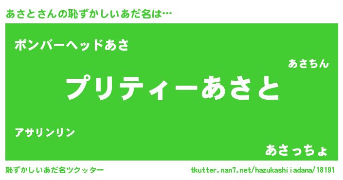 | ヘコむあだ名 | 『あさもー』『豆乳』『あさっ子』 |