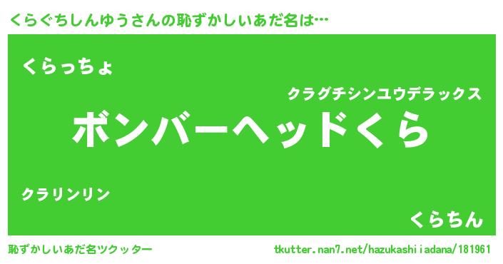 | 料理風あだ名 | 『くらぐちしんゆうごはん』 |