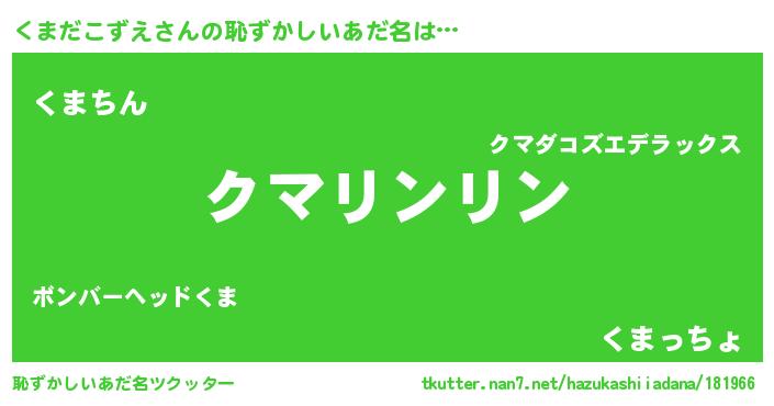 | ヘコむあだ名 | 『くまを』『くまだこずえ(小並感)』 |