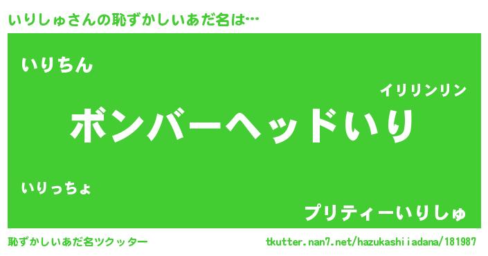 | ヘコむあだ名 | 『いりしゅ(笑)』『いりにー』『豆乳』 |