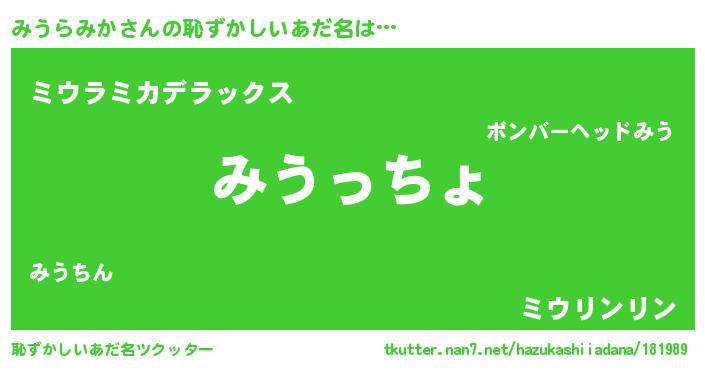 | 意味不明あだ名 | 『みうらみかフォーエバー』 |