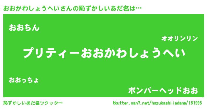 | ヘコむあだ名 | 『おおにー』『おおかわしょうへい(震え声)』 |