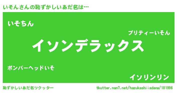 | 意味不明あだ名 | 『自称いそん』『永久保存いそん』 |