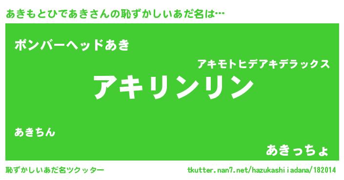 | 胡散臭い通販商品みたいなあだ名 | 『信頼と実績のネックレス…その名も「あきもとひであき」』 |