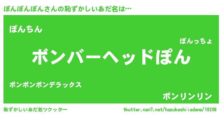 | ヘコむあだ名 | 『ぽんぽんぽん(遠い目)』『ぽんっちょ』 |