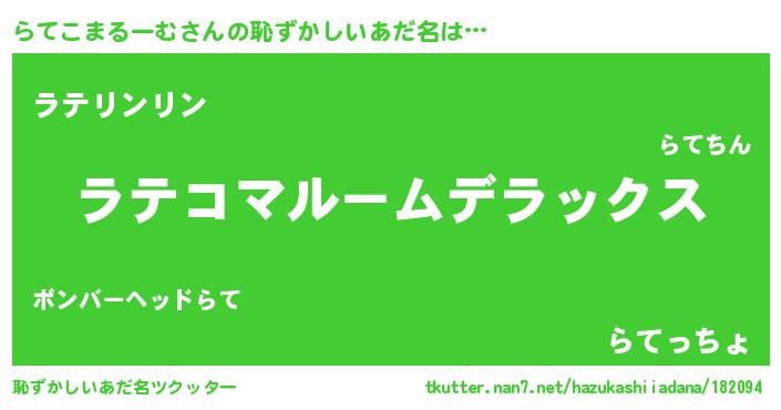 | 意味不明あだ名 | 『自称らてこまるーむ』 |
