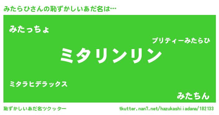 | ヘコむあだ名 | 『みたを』『豆乳』『みたにゅー』 |