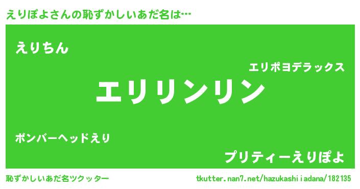 | 男性向けラノベタイトル風あだ名 | 『えりぽよの嫁は女の子じゃないと思った?』 |