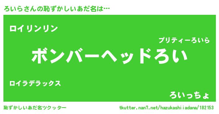 | ヒーロー風カッコイイあだ名 | 『仮面ロイダー』『慈愛の使者ろいら』 |