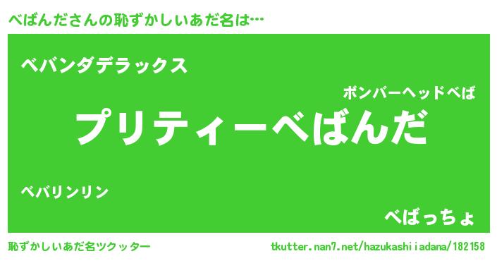 | 意味不明あだ名 | 『ペロリンべばんだ』『自称べばんだ』 |