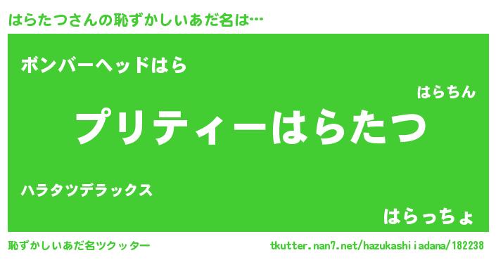| 意味不明あだ名 | 『ペロリンはらたつ』『永久保存はらたつ』 |