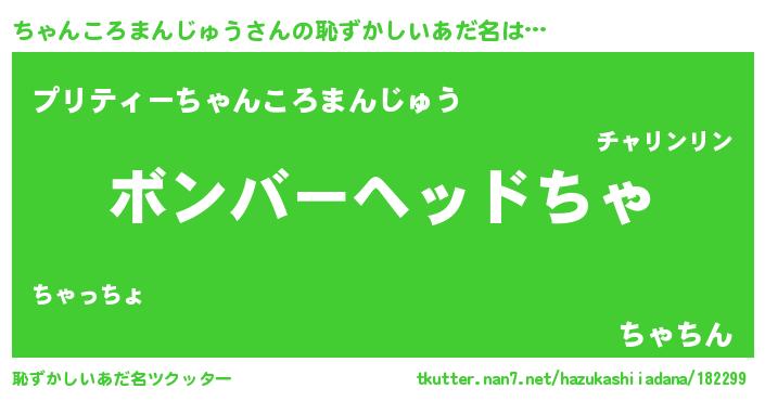 | ヘコむあだ名 | 『ちゃもー』『ちゃんころまんじゅう(笑)』 |