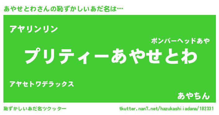 | 男性向けラノベタイトル風あだ名 | 『アヤセトワスレイヤー』 |