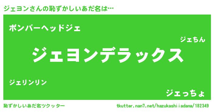| 意味不明あだ名 | 『もやし科ジェヨン属』『自称ジェヨン』 |