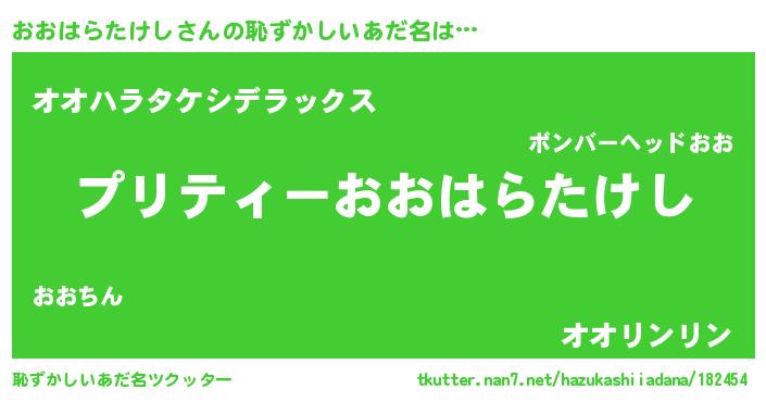 | 伝説のあだ名 | 『伝説のスナイパーおおはらたけし』 |