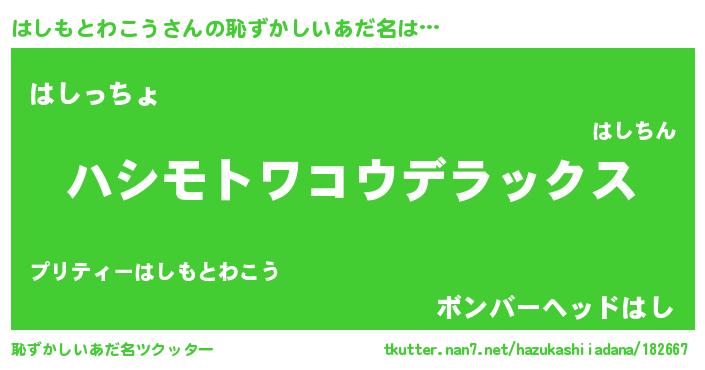 | 欧米人風あだ名 | 『はしもとわこう・ステッグマイヤー』 |