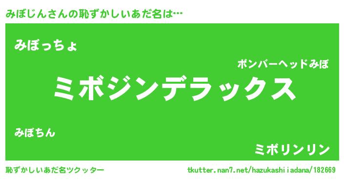 | ヒーロー風カッコイイあだ名 | 『仮面ミボダー』『究極戦士ミボジン』 |