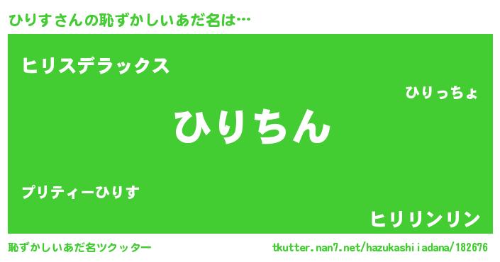 | 男性向けラノベタイトル風あだ名 | 『ひりすという概念が存在しない退屈な世界 』 |