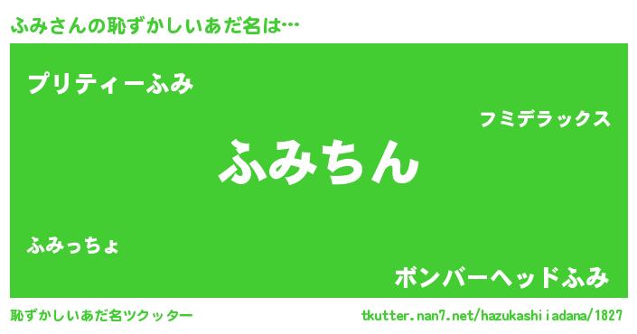 | ヘコむあだ名 | 『ふみ(笑)』『ふみもー』『酢こんぶ』 |