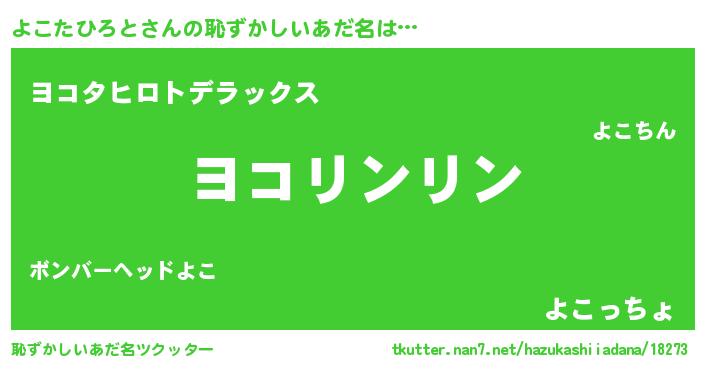 | 女子向けラノベタイトル風あだ名 | 『よこたひろとは平凡を望む』 |