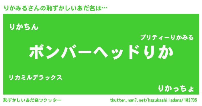 | 欧米人風あだ名 | 『りかみる・ステッグマイヤー』 |