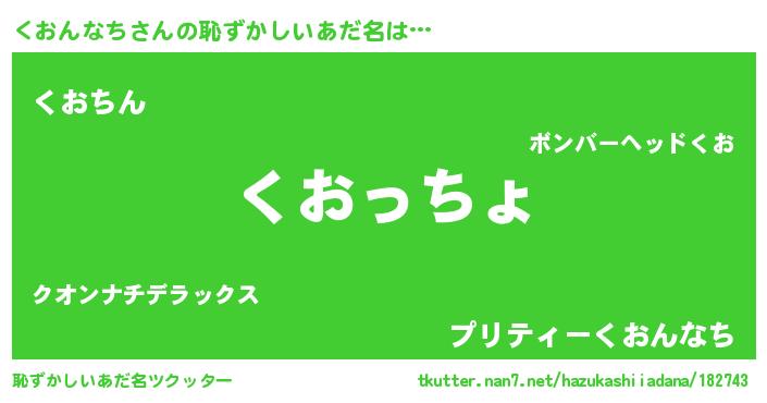 | 男性向けラノベタイトル風あだ名 | 『くおんなち~年齢イコール彼女いない歴の魔法使い~』 |