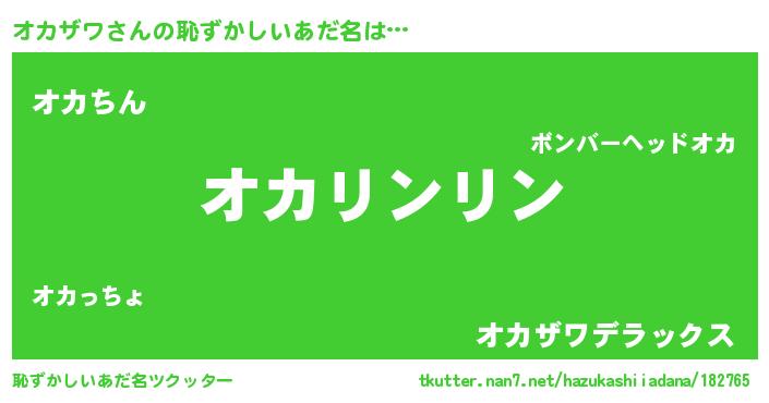 | 男性向けラノベタイトル風あだ名 | 『オカザワの嫁は女の子じゃないと思った?』 |