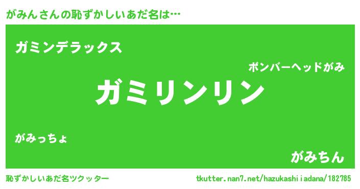 | 意味不明あだ名 | 『とにかく怪しいがみん』『自称がみん』 |