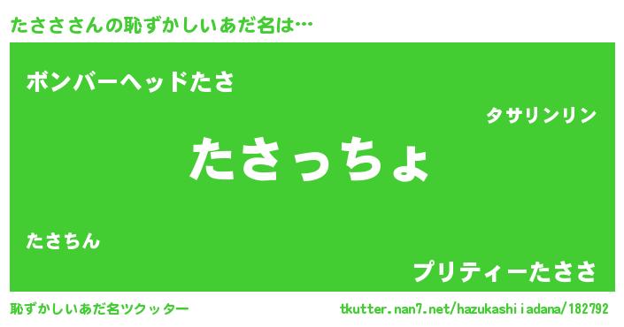 | 意味不明あだ名 | 『たささフォーエバー』『ペロリンたささ』 |