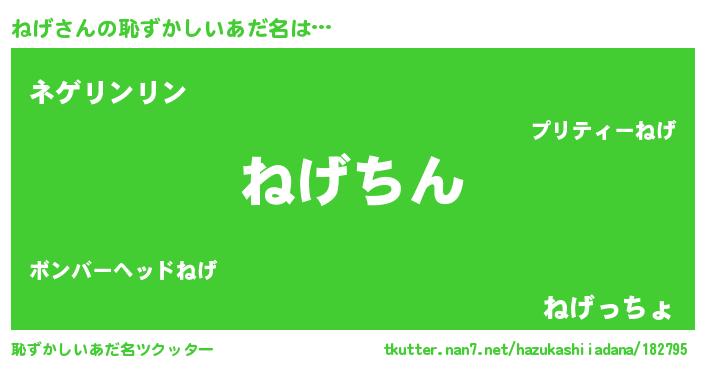| ヘコむあだ名 | 『ねげ(笑)』『ねげを』『酢こんぶ』 |