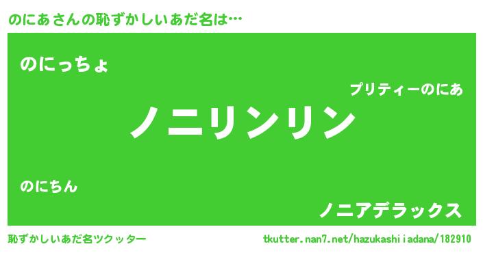 | 意味不明あだ名 | 『とにかく怪しいのにあ』『自称のにあ』 |