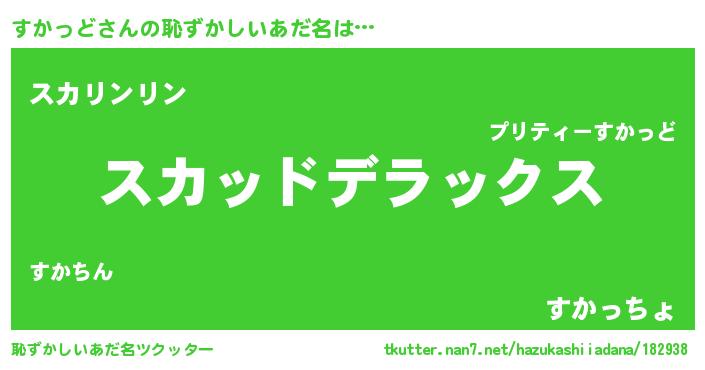 | 男性向けラノベタイトル風あだ名 | 『Re:すかっどから始める異世界生活』 |