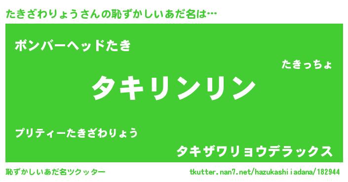 | 男性向けラノベタイトル風あだ名 | 『ダンジョンにたきざわりょうを求めるのは間違っているだろうか』 |
