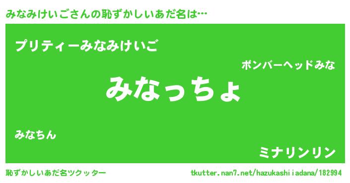| ヘコむあだ名 | 『牛乳』『みなっふぃ~』『みな太郎』 |