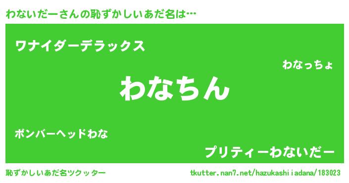 | 胡散臭い通販商品みたいなあだ名 | 『絶対に幸福をもたらす水素水…その名も「わないだー」』 |