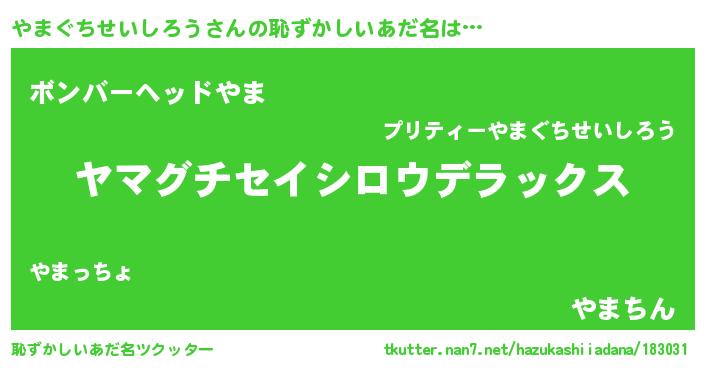 | ヘコむあだ名 | 『やまぐちせいしろう(苦笑)』『やまもー』 |