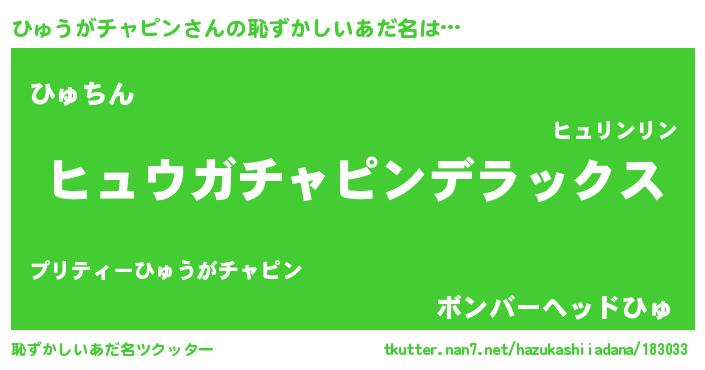 | ヒーロー風カッコイイあだ名 | 『最強戦士ヒュウガチャピン』 |