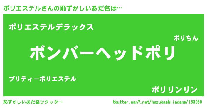 | 欧米人風あだ名 | 『アンジェラ・ポリエステル』 |