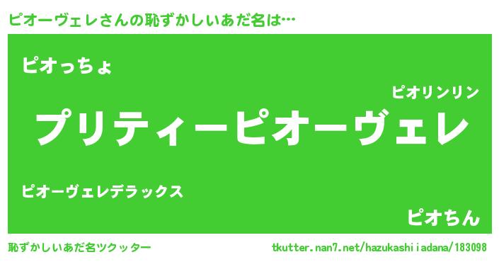 | 意味不明あだ名 | 『住所不定無職ピオーヴェレ(84歳)』 |