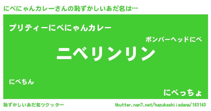 | 欧米人風あだ名 | 『トリンドルにべにゃんカレー』 |
