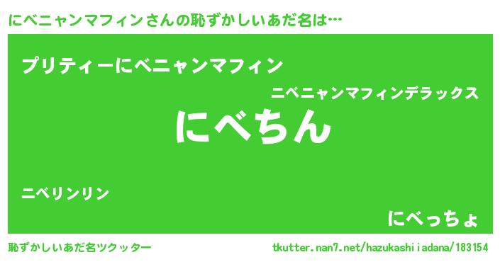 | 意味不明あだ名 | 『永久保存にべニャンマフィン』 |